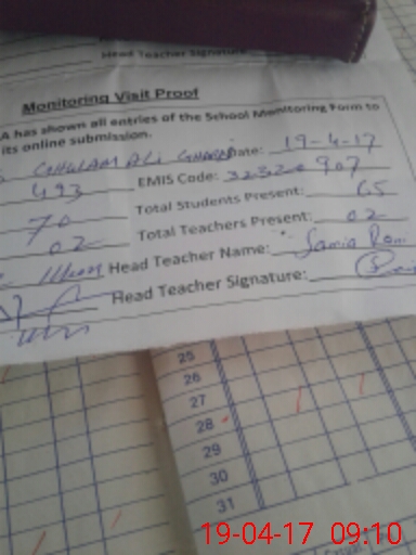 | Attendance Register | Head Teacher | MEA with School | Visit Proof |