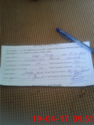 | Attendance Register | Head Teacher | MEA with School | Visit Proof |