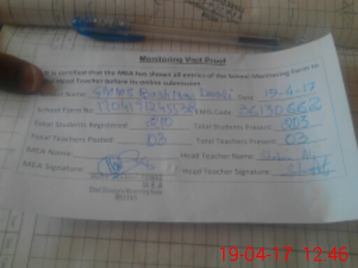 | Attendance Register | Head Teacher | MEA with School | Visit Proof |