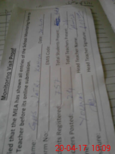 | Attendance Register | Head Teacher | MEA with School | Visit Proof |