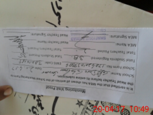 | Name: Sa**** Sh**** Designation: (School Headmaster's/Headmistress's) pst Phone/Cell Number: 03**** |