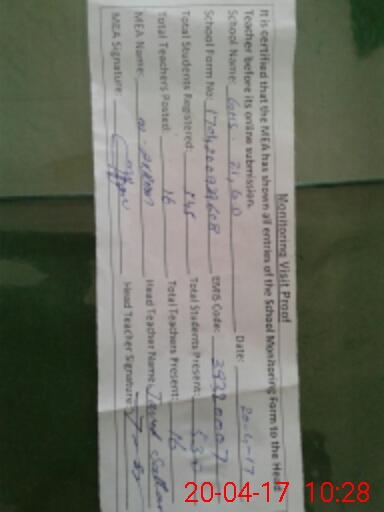 | Attendance Register | Head Teacher | MEA with School | Visit Proof |