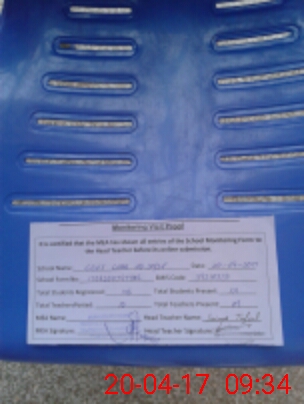 | Attendance Register | Head Teacher | MEA with School | Visit Proof |