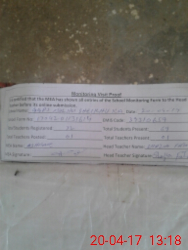 | Attendance Register | Head Teacher | MEA with School | Visit Proof |