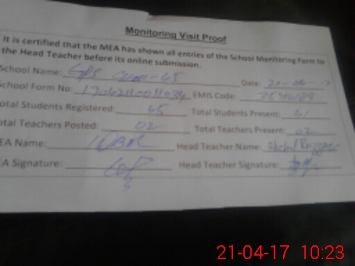 | Certified that this School was Inspected by the Undersigned MEA/DMO Today and the Information Stated Above is as Per Record. | |||||