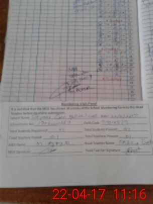 | Attendance Register | Head Teacher | MEA with School | Visit Proof |