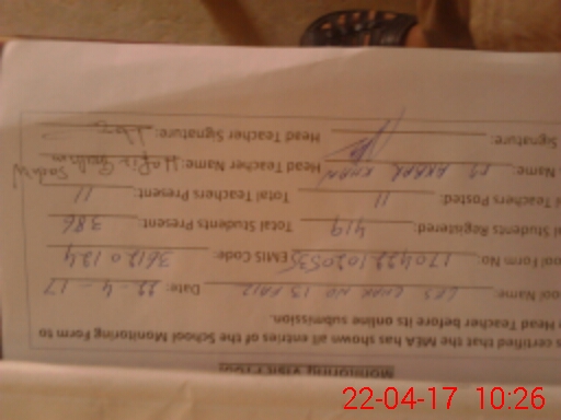 | Certified that this School was Inspected by the Undersigned MEA/DMO Today and the Information Stated Above is as Per Record. | |||||
