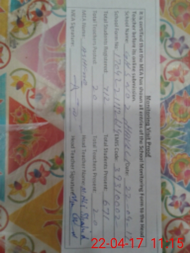 | Certified that this School was Inspected by the Undersigned MEA/DMO Today and the Information Stated Above is as Per Record. | |||||