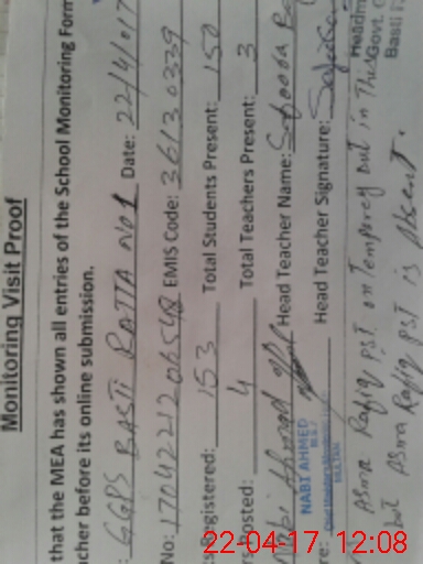| EMIS Code: 36130339 | Name of School: GGPS BASTI RATTA NO.1 | |||