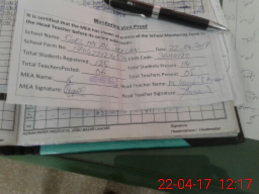 | EMIS Code: 36110170 | Name of School: GES MC AL-JEELLAN WALA MULTAN | |||
