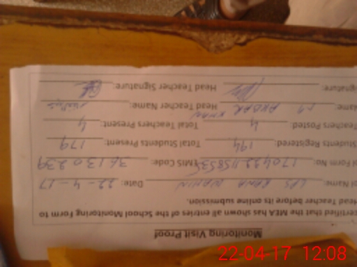 | Certified that this School was Inspected by the Undersigned MEA/DMO Today and the Information Stated Above is as Per Record. | |||||