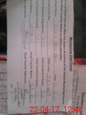 | Attendance Register | Head Teacher | MEA with School | Visit Proof |