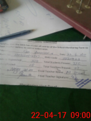 | Monitoring Date: 22-04-2017 | Start Time: 22-04-2017 08:03 AM | End Time: 22-04-2017 09:00 AM | Name of MEA: Na**** Kh**** (R**** | |