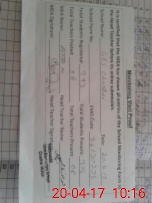 | Attendance Register | Head Teacher | MEA with School | Visit Proof |