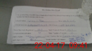 | Monitoring Date: 22-04-2017 | Start Time: 22-04-2017 08:49 AM | End Time: 22-04-2017 09:44 AM | Name of MEA: Za**** Iq**** BN**** | |
