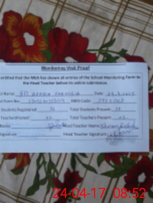 | Attendance Register | Head Teacher | MEA with School | Visit Proof |