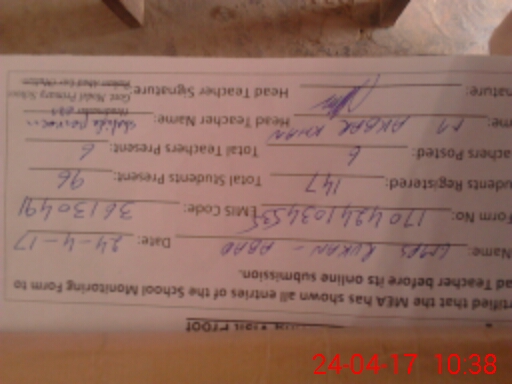 | Name: Re**** Ak**** Designation: (School Headmaster's/Headmistress's) PST/PTC/JV Phone/Cell Number: 03**** |