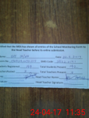 | Attendance Register | Head Teacher | MEA with School | Visit Proof |