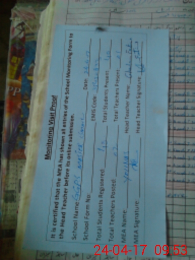 | Attendance Register | Head Teacher | MEA with School | Visit Proof |
