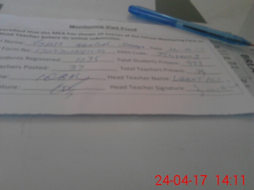 | Attendance Register | Head Teacher | MEA with School | Visit Proof |