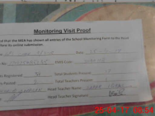 | Attendance Register | Head Teacher | MEA with School | Visit Proof |