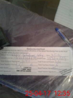 | Attendance Register | Head Teacher | MEA with School | Visit Proof |