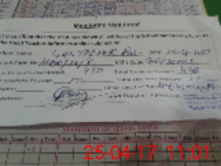 | Monitoring Date: 25-04-2017 | Start Time: 25-04-2017 10:37 AM | End Time: 25-04-2017 11:02 AM | Name of MEA: SA**** AK**** | |