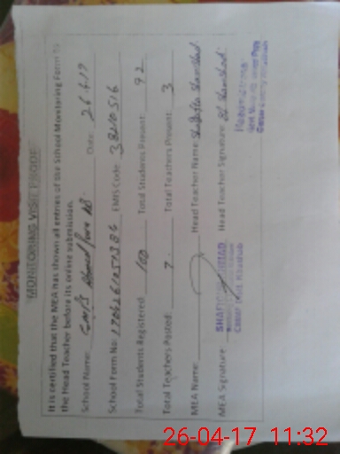 | Certified that this School was Inspected by the Undersigned MEA/DMO Today and the Information Stated Above is as Per Record. | |||||