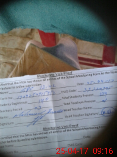 | Name: MHA**** Designation: (School Headmaster's/Headmistress's) HEADMASTER Phone/Cell Number: 03**** |
