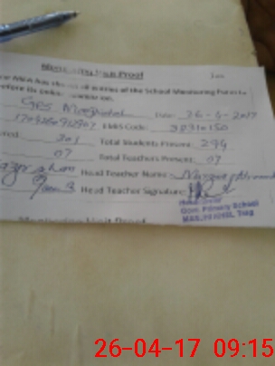 | Attendance Register | Head Teacher | MEA with School | Visit Proof |