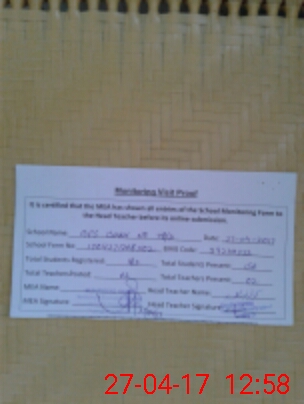 | Certified that this School was Inspected by the Undersigned MEA/DMO Today and the Information Stated Above is as Per Record. | |||||
