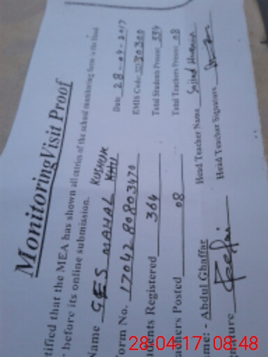| EMIS Code: 32330300 | Name of School: GES MAHAL KUSHAK | |||