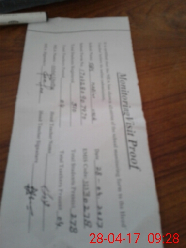 | Monitoring Date: 28-04-2017 | Start Time: 28-04-2017 09:07 AM | End Time: 28-04-2017 09:32 AM | Name of MEA: Ab**** Gh**** | |