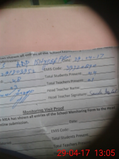 | Attendance Register | Head Teacher | MEA with School | Visit Proof |