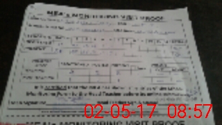 | Monitoring Date: 02-05-2017 | Start Time: 02-05-2017 08:25 AM | End Time: 02-05-2017 09:13 AM | Name of MEA: M.Ra**** Kh**** (R**** | |