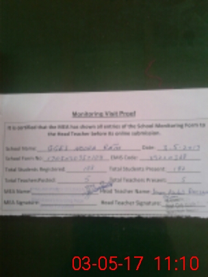 | Attendance Register | Head Teacher | MEA with School | Visit Proof |