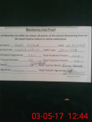 | Attendance Register | Head Teacher | MEA with School | Visit Proof |