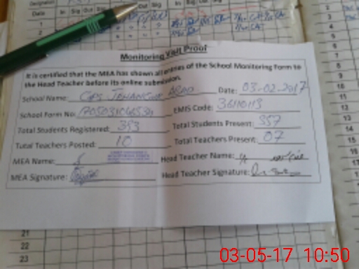 | Attendance Register | Head Teacher | MEA with School | Visit Proof |