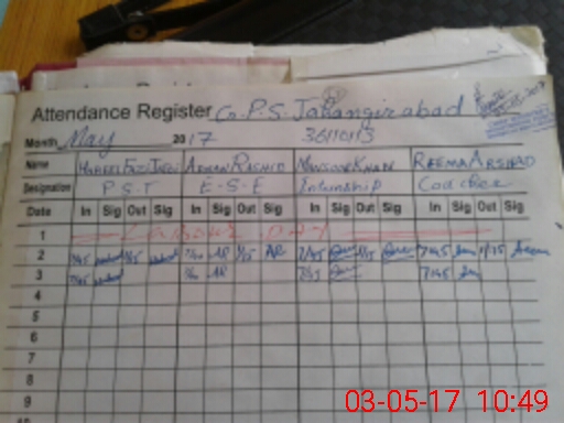 | CNIC | Full Name | Designation | R/C | Absence During Last Calender Month |
