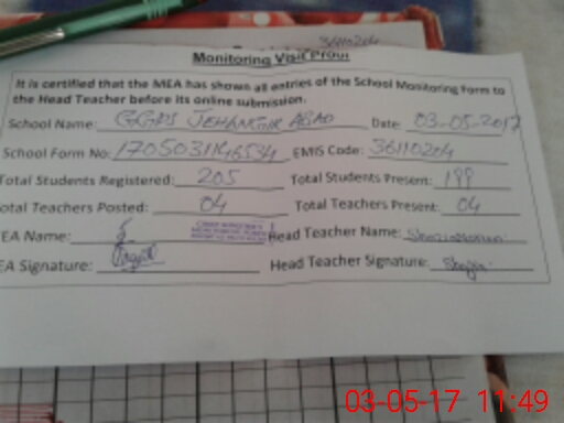 | Certified that this School was Inspected by the Undersigned MEA/DMO Today and the Information Stated Above is as Per Record. | |||||