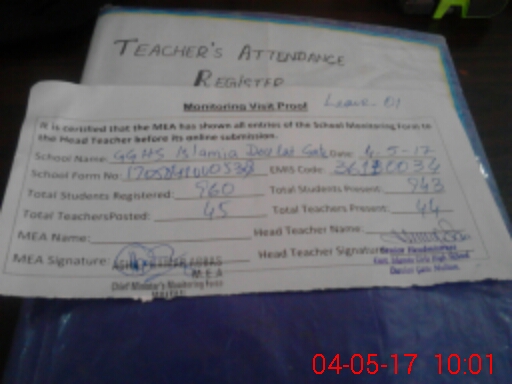 | Attendance Register | Head Teacher | MEA with School | Visit Proof |