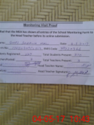 | Attendance Register | Head Teacher | MEA with School | Visit Proof |