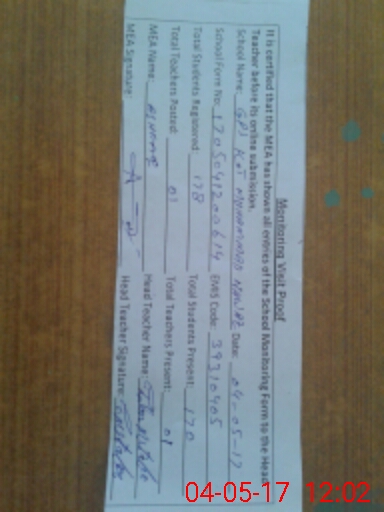 | Attendance Register | Head Teacher | MEA with School | Visit Proof |
