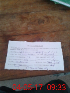 | Monitoring Date: 04-05-2017 | Start Time: 04-05-2017 08:58 AM | End Time: 04-05-2017 09:34 AM | Name of MEA: Sa**** Hu**** | |