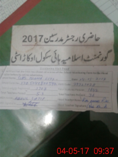 | EMIS Code: 39321028 | Name of School: GHS ISLAMIA OKARA CITY | |||