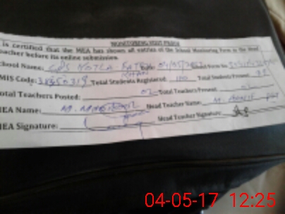 | Attendance Register | Head Teacher | MEA with School | Visit Proof |