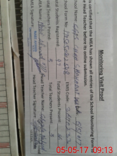 | Attendance Register | Head Teacher | MEA with School | Visit Proof |