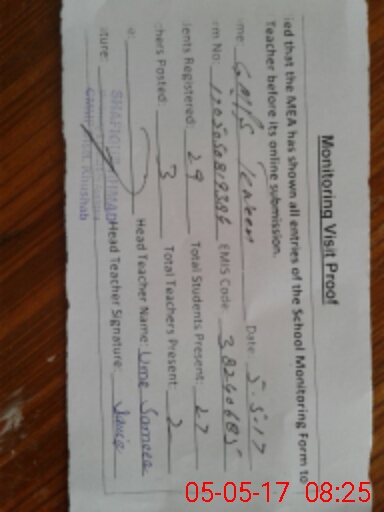 | Attendance Register | Head Teacher | MEA with School | Visit Proof |