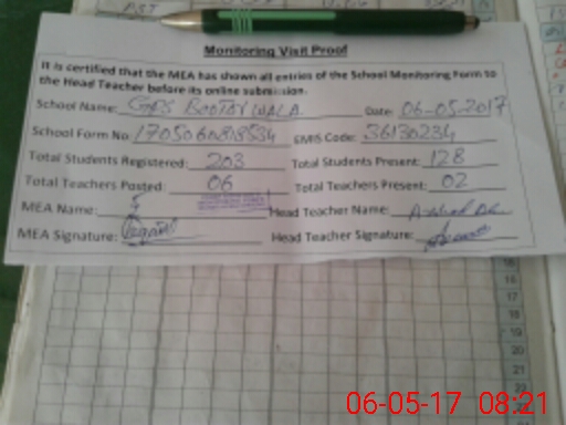 | Attendance Register | Head Teacher | MEA with School | Visit Proof |