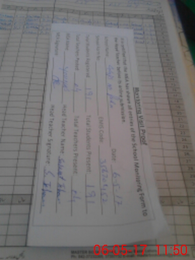 | Attendance Register | Head Teacher | MEA with School | Visit Proof |